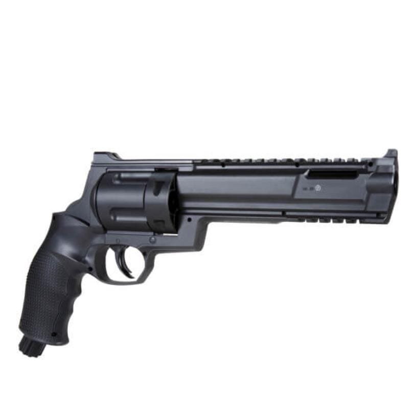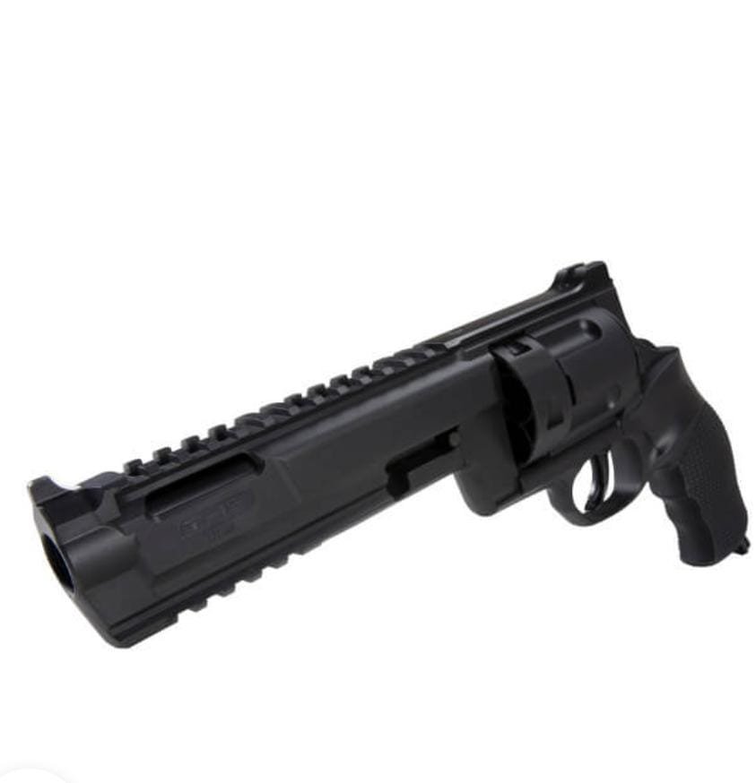 Un gran revólver de pistola de paintball que dispara rondas de calibre .50 y sostiene 6 rondas por clip giratorio detrás de su cilindro. Alimentado por cartuchos de CO2 Umarex de 12 gramos Dispara a ~ 350 fps