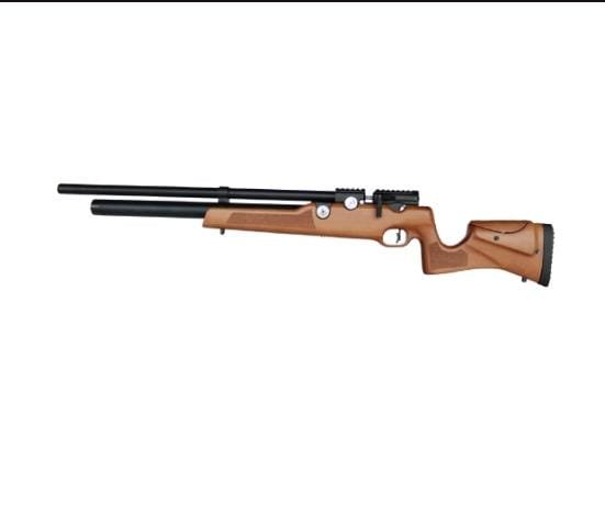 Este rifle PCP con culata de madera combina elegancia, potencia y precisión. Disponible en calibres .22 (5.5 mm) y .25 (6.35 mm), es perfecto para tiro deportivo exigente.